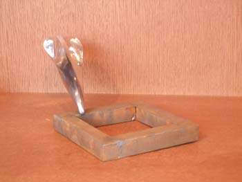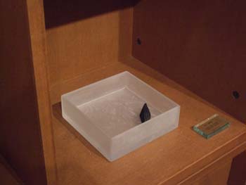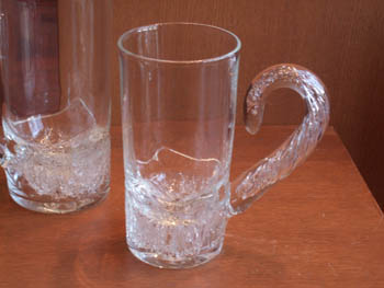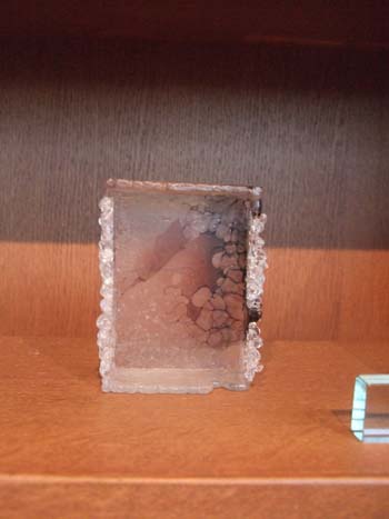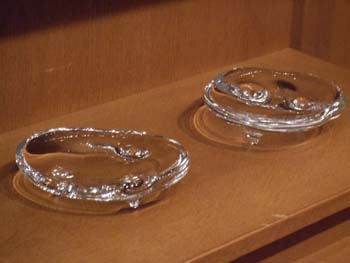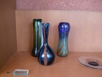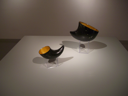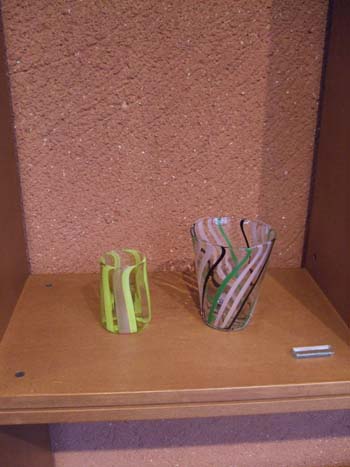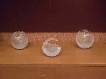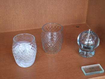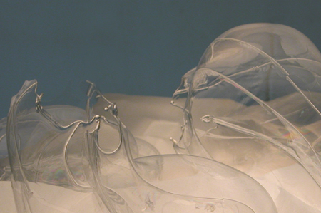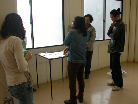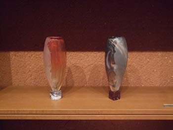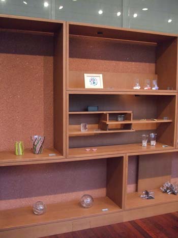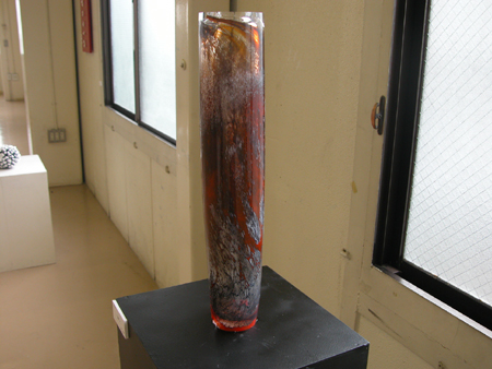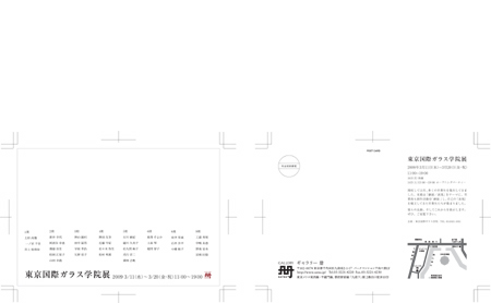 「継続/表現」をテーマに、11年間の東京国際ガラス学院の歩みを振り返る展示になりました。 会期 2009年3月11日(水)〜3月20日(金) 場所 ギャラリー册 卒業生を対象に、参加希望者を集り開催した企画展です。 今回参加者の展示作品です。 まずは、入口手前の棚よりご紹介します。 一ノ宮さんは、ホットワーク以外にも、バーナーワークでも制作しています。 地道に、丁寧に、明るく、マイペースな仕事。 一ノ宮 千佳「Dance in The Flower Garden」 ホットワーク、ケインワーク 勝田さんは、のんびりぼっこ広場と言う工房スペースをご家族で経営しています。 ガラス以外にも、陶芸なども体験できるスペースです。 詳しくは、こちらへ nonbiribokko@kitanomori.com 勝田 友李「青さ」 バーナーワーク、キルンワーク/ガラス、粘土、木 学生時代より、ずっとこれです。 石井 洋平「パンティグラス」 左より リボン、ハートフル、横浜スターズ /ホットワーク コールドワーク いろいろなワークショップに参加しているため、とっても顔の広い人。 これは、中に銅線が入っています。 その銅線に引っ張られるようにガラスの膜の層がいくつも球の内部にできている。 神山 銀河「膜-maku-」 ホットワーク/ガラス 銅線 銀河くんは、こちらの作品以外にも「生流」というソリッドワークの作品も出品しています。 はこの形を通して、ガラスを表現。 見てもらいたいところに、つぶ がいる。 新井 幸代「はこ うろこ」 キルンキャスト、フュージング 新井 幸代「はこ たれ」 キルンキャスト、フュージング ただいま、北海道の工房で頑張ってます。 学生時代も、手袋してガラスをにぎってました。 しばれガラス。 野池 征永「一握」 ホットワーク/しばれ硝子 野池 征永「桜箸置き」 ホットワーク/しばれ硝子 ひとつぶひとつぶにマグネットがついている。 支持体によって世界のかわる作品。 高澤 そよか「たまゆら」 ホットワーク/ガラス、金属、マグネット 小さいのに、とても精巧にできている。 パートドヴェールの色の研究を学生時代からずっとし続けています。 越川 久美子「人工魚 ニシキゴイ」 パートドヴェール 越川 久美子「人工魚 リュウキン」 パートドヴェール 越川 久美子「人工魚 イロデメキン」 パートドヴェール ガラスで制作する前から、いろいろなものをつくっている。 写真でも制作しています。 根間 智子「欠片 - fragment -」 キルンワーク/ Float Glass 根間 智子「欠片 - fragment -」 キルンワーク/ Float Glass 根間 智子「欠片 - fragment -」 キルンワーク/ Float Glass 根間 智子「欠片 - fragment -」 キルンワーク/ Float Glass 隣の棚へ 金属とガラスという素材が、溶着ではなく接着でつなげられている作品。 接着されたあと、きれいに磨かれカタチが出来上がる。 守屋 孝浩「構築するカタチ」 キルンワーク コールドワーク/ガラス 銅 精力的に活動しています。 ギャラリー「プリズム」の女主人でもあります。 井上 枝利奈「イロノハコ」/キルンキャスト 「イロノタネ」/ホットワーク、カット こちらの作品以外にも、まじめに、いろいろなとんぼ玉をつくっています。 諸岡 志帆「Green jewel」 バーナーワーク/ガラス、金属 岡山の工房で頑張ってる女性。 佐々木 弥生「ー掌ー たなごころ」 ホットワーク コールドワーク 佐々木 弥生「 new flames 」 ホットワーク コールドワーク ロッドをこねこねしては、色のもとから制作している。 工藤 秀晃「Sub-black vessel 」 ホットワーク コールドワーク サンドブラスト ガラスの起こす現象から、制作が始まる人。 吹いた玉が、電気炉の中で変化して出てくる。 中嶋 良恵「内鏡」 ホットワーク 名古屋に工房を構え、地道に制作しています。 ランプは、置きにも吊るしにもできるしくみになっている。 矢野 容子「ランプ」 バーナーワーク/ホウ硅酸ガラス 矢野さんは、「リング」も出品しています。 北海道に工房をかまえ、制作中。 Studio π 上杉 高雅「白イマ花器」 ブローイング 上杉 高雅「白イマ皿」 ブローイング 上杉 高雅「イマグラス&リキッドキャンドル(3点セット)」 ブローイング ひとつの曲面の反対側の曲面をもった形態 安斉 里恵 左より「さんかく」 「まる」 キルンワーク 家でこつこつ制作。 彩でも講座の先生です。 光行 洋二「(Days it is broken, and to go. And I create it)」 バーナーワーク MOMAでも販売中。 矢野 容子「リング」 バーナーワーク/ホウ硅酸ガラス ガラスという素材からできることで築かれた世界。 宮崎 匠悟「一拍の因力」 バーナーワーク まっすぐの鉄の棒に、 たまゆら。 高澤 そよか「たまゆら」 ホットワーク/ガラス、金属、マグネット 裏をつくるは表をつくる。 日常の中からつくるが始まっている人。 斎藤 崇生「裏貼表」 額縁、シール、エナメル かたまりで表現できることを。 神山 銀河「生流」 ソリッドワーク 神山 銀河「生流」 ソリッドワーク 金沢に工房をかまえ制作。 ハピネスサンタ。 山田 幸義「ビアジョッキ(大)」 ホットワーク 「ビアジョッキ(中)」 ホットワー