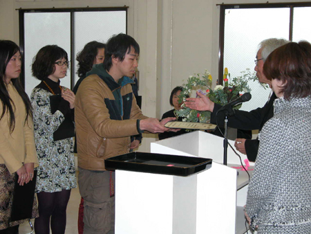 ネタはたくさんあります。ありすぎてどこからブログに紹介するか、迷っております〜〜 でも、まずは卒業式から行ってみましょ〜〜 第10回 東京国際ガラス学院の卒業式です 学院長のお言葉から 中村錦平さんからは、現在册で行われている卒業制作展の講評をしてもらいました。「継続」と、いう言葉を幾度とおっしゃっていました。 外館 和子さんからは、ガラスという素材の可能性と、エールをいただきました!! 先日の講評での受賞者の表彰式! そして.... 卒業生と、スタッフの全体集合写真!! そして......そして....... ガラス学院スタッフ女性集合写真(笑)めったにない一枚! 卒業式後、卒業証書をもらいほっとしています。 謝恩会は 「屋形舟!!!!」 もんじゃ、おこのみ焼きの食べ放題!! 幹事さんおつかれ様でした〜〜 おわり 2009/03/14(Sat) 12:16:24