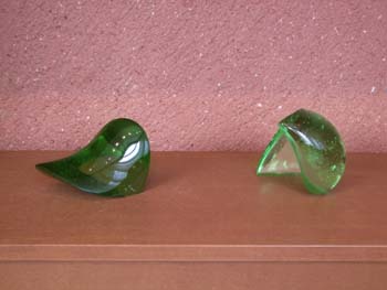「継続/表現」をテーマに、11年間の東京国際ガラス学院の歩みを振り返る展示になりました。 会期 2009年3月11日(水)〜3月20日(金) 場所 ギャラリー册 卒業生を対象に、参加希望者を集り開催した企画展です。 今回参加者の展示作品です。 まずは、入口手前の棚よりご紹介します。 一ノ宮さんは、ホットワーク以外にも、バーナーワークでも制作しています。 地道に、丁寧に、明るく、マイペースな仕事。 一ノ宮 千佳「Dance in The Flower Garden」 ホットワーク、ケインワーク 勝田さんは、のんびりぼっこ広場と言う工房スペースをご家族で経営しています。 ガラス以外にも、陶芸なども体験できるスペースです。 詳しくは、こちらへ nonbiribokko@kitanomori.com 勝田 友李「青さ」 バーナーワーク、キルンワーク/ガラス、粘土、木 学生時代より、ずっとこれです。 石井 洋平「パンティグラス」 左より リボン、ハートフル、横浜スターズ /ホットワーク コールドワーク いろいろなワークショップに参加しているため、とっても顔の広い人。 これは、中に銅線が入っています。 その銅線に引っ張られるようにガラスの膜の層がいくつも球の内部にできている。 神山 銀河「膜-maku-」 ホットワーク/ガラス 銅線 銀河くんは、こちらの作品以外にも「生流」というソリッドワークの作品も出品しています。 はこの形を通して、ガラスを表現。 見てもらいたいところに、つぶ がいる。 新井 幸代「はこ うろこ」 キルンキャスト、フュージング 新井 幸代「はこ たれ」 キルンキャスト、フュージング ただいま、北海道の工房で頑張ってます。 学生時代も、手袋してガラスをにぎってました。 しばれガラス。 野池 征永「一握」 ホットワーク/しばれ硝子 野池 征永「桜箸置き」 ホットワーク/しばれ硝子 ひとつぶひとつぶにマグネットがついている。 支持体によって世界のかわる作品。 高澤 そよか「たまゆら」 ホットワーク/ガラス、金属、マグネット 小さいのに、とても精巧にできている。 パートドヴェールの色の研究を学生時代からずっとし続けています。 越川 久美子「人工魚 ニシキゴイ」 パートドヴェール 越川 久美子「人工魚 リュウキン」 パートドヴェール 越川 久美子「人工魚 イロデメキン」 パートドヴェール ガラスで制作する前から、いろいろなものをつくっている。 写真でも制作しています。 根間 智子「欠片 - fragment -」 キルンワーク/ Float Glass 根間 智子「欠片 - fragment -」 キルンワーク/ Float Glass 根間 智子「欠片 - fragment -」 キルンワーク/ Float Glass 根間 智子「欠片 - fragment -」 キルンワーク/ Float Glass 隣の棚へ 金属とガラスという素材が、溶着ではなく接着でつなげられている作品。 接着されたあと、きれいに磨かれカタチが出来上がる。 守屋 孝浩「構築するカタチ」 キルンワーク コールドワーク/ガラス 銅 精力的に活動しています。 ギャラリー「プリズム」の女主人でもあります。 井上 枝利奈「イロノハコ」/キルンキャスト 「イロノタネ」/ホットワーク、カット こちらの作品以外にも、まじめに、いろいろなとんぼ玉をつくっています。 諸岡 志帆「Green jewel」 バーナーワーク/ガラス、金属 岡山の工房で頑張ってる女性。 佐々木 弥生「ー掌ー たなごころ」 ホットワーク コールドワーク 佐々木 弥生「 new flames 」 ホットワーク コールドワーク ロッドをこねこねしては、色のもとから制作している。 工藤 秀晃「Sub-black vessel 」 ホットワーク コールドワーク サンドブラスト ガラスの起こす現象から、制作が始まる人。 吹いた玉が、電気炉の中で変化して出てくる。 中嶋 良恵「内鏡」 ホットワーク 名古屋に工房を構え、地道に制作しています。 ランプは、置きにも吊るしにもできるしくみになっている。 矢野 容子「ランプ」 バーナーワーク/ホウ硅酸ガラス 矢野さんは、「リング」も出品しています。 北海道に工房をかまえ、制作中。 Studio π 上杉 高雅「白イマ花器」 ブローイング 上杉 高雅「白イマ皿」 ブローイング 上杉 高雅「イマグラス&リキッドキャンドル(3点セット)」 ブローイング ひとつの曲面の反対側の曲面をもった形態 安斉 里恵 左より「さんかく」 「まる」 キルンワーク 家でこつこつ制作。 彩でも講座の先生です。 光行 洋二「(Days it is broken, and to go. And I create it)」 バーナーワーク MOMAでも販売中。 矢野 容子「リング」 バーナーワーク/ホウ硅酸ガラス ガラスという素材からできることで築かれた世界。 宮崎 匠悟「一拍の因力」 バーナーワーク まっすぐの鉄の棒に、 たまゆら。 高澤 そよか「たまゆら」 ホットワーク/ガラス、金属、マグネット 裏をつくるは表をつくる。 日常の中からつくるが始まっている人。 斎藤 崇生「裏貼表」 額縁、シール、エナメル かたまりで表現できることを。 神山 銀河「生流」 ソリッドワーク 神山 銀河「生流」 ソリッドワーク 金沢に工房をかまえ制作。 ハピネスサンタ。 山田 幸義「ビアジョッキ(大)」 ホットワーク 「ビアジョッキ(中)」 ホットワー