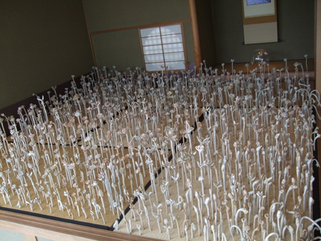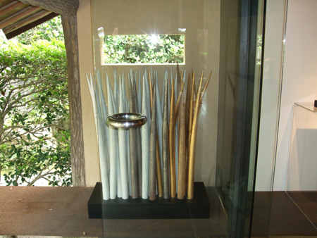 山口宇部空港から車で1時間半!やっと着きました三輪和彦宅に!! この写真も三輪家のほんの一部ですけど(笑) とにかく天気に恵まれました いざ、打ち合わせに〜〜 日本刀で、土を切り、土のエネルギーを引き出すことには、右に出る方はいません! 10月にワークショップをお願いしています。 今回もおもしろい企画を練っておりますので、どうぞご期待くださいませ。 山口県立萩美術館・浦上記念館へ★「山東省石仏展」おもしろかったです☆橋本真之さんの「果樹園」で沢山写真を撮り 和室へ行くと うわ!?きのこ??? きのこではないですよ 萩陶芸家の金子司さんの「種種(くさぐさ)」です 詳しくはここクリック! そして、我が学院長へ会いにギャラリー「彩陶庵」へ 萩を代表する作家さんの作品のほかに、ガラス作品やフェルト作品もありました。 わたしとしては、中川幸夫さんの書「櫻」が素敵だった〜〜(買えないくらい高いんだろうな。。。。。。。。。) 詳しくはここをワンクリック! 現在は、学院長の娘婿の白田さんが代表取締役として活躍しております☆ 全員で記念撮影! 左から白田さんの奥様、金子司さん、一人とんで。。安藤さん そして、本日ブログの閉めは やはり三輪さんの作品で! 2008/06/18(Wed) 17:23:20