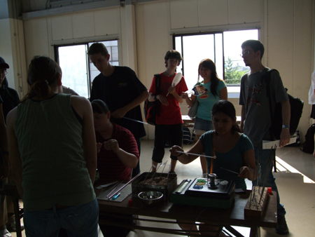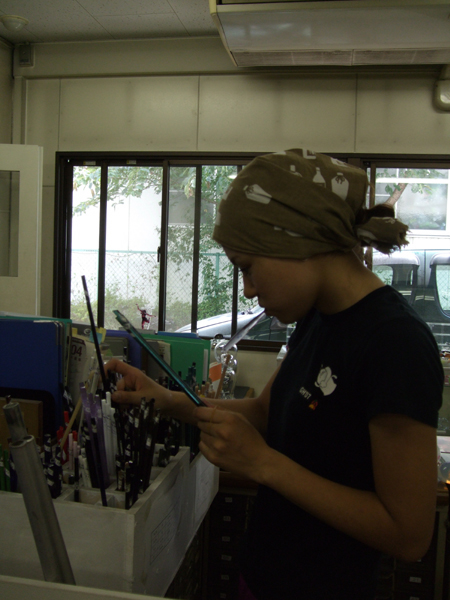 今日は、台湾人の留学生がほとんどでした 昨日と同じく体験講座start!! デモンストレーションをみる留学生は真剣! 暑かったですよ〜〜〜〜 たのしかった!っと、片言の日本語で応えてくれた多くの留学生の皆さんにとって、少しでも、いい思い出を提供できたかな〜〜っと、思います。 ^^^^^^^^^^^^^^^^^^^^^!!! さてさて、夜の話題に移りましょう。 その日、ガラス学院を4年間、数字の面で支えてきた経理担当:ミネザキ氏の送別会でした スタッフからのガラスペンを持って、満面の笑み!! いつもは、会社本部(南浦和)にいるのでなかなか学校には来れない方なのですが 遠隔操作で、数字をコントロールし、助けてくれた方です。 香港に8月から行って、公認会計士として勉強してくるそうです☆★ おつかれ様でした 2008/07/24(Thu) 15:07:34